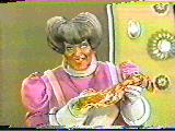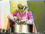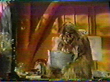 BEEDO: Malla gets back to cooking (Wookiees are apparently male chauvinist sloths) after the calls are made. Did I mention that the cooking video Malla is watching is hosted by Harvey Korman? In drag? Playing a four-armed Julia-Child-like chef, Harvey has burned the words "Stir, whip, stir, whip, whip, whip, stir!" into the brains of those unfortunate enough to watch the show. The capering and mugging are painful to watch, and his lower pair of arms are so uncoordinated, he gets smacked in the face with a ladle when tasting the Bantha Surprise. Malla gives up in despair, and so do most audiences. |