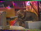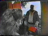 BEEDO: The Empire sets up a blockade of more stock footage,and Art Carney shows up with some deliveries, including a power pack for Malla's Mind Evaporator, (Didn't they have those in Auschwitz?) a mini-transmitter for Lumpy, and a questionable recording for Itchy. Art slips the recording into the hairdryer -- I mean, VR Entertainment Center -- |