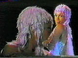BEEDO: -- and plays a recording of Diahnn Carroll; she proceeds to talk sexy to Itchy. It wouldn't be so bad, if only we didn't get occasional glimpses of Itchy's wrinkled, ugly mug and grunts of pleasure. Most people I've lent this tape to felt the need to shower away the dirty feeling at this point. Diahnn Carroll doesn't sing badly, but the kaleidoscopic background is bound to cause headaches. After a Doctor-Who-style fade-out, the song is mercifully over. |
