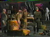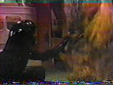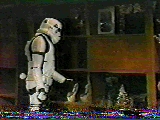 BEEDO: ...consisting of two stormtroopers, a naval trooper, and an officer who, at first glance, appears to be Al Bundy. Art Carney (yes, he's still there) blathers in an irritating manner, and tension arises between the Imperials and the Wookiees when the naval trooper attempts to be friendly and Lumpy tries to bite his hand off. Art intercedes before the trooper can bash Lumpy in the mush. Pity. The Imperials start searching the premises for signs of Rebel sympathies... |